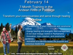 A transformational training that blends Andean wisdom, plant sacrament ceremonies, and the Hampeq path. Participants experience initiations, rituals, integration practices, and guided learning to deepen personal healing and develop the skills to support others on their spiritual journey. Ideal for...